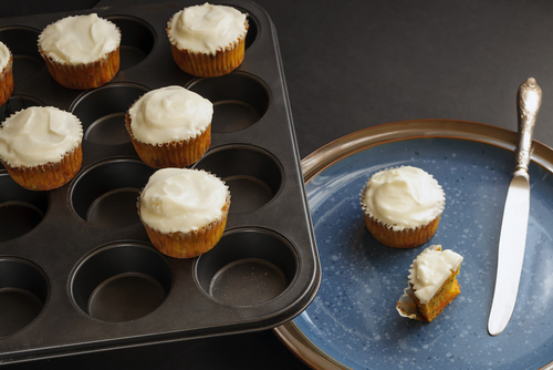Healthy Carrot Zucchini Muffins with Goat Cheese Icing
